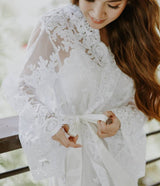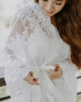 For this special robe called Bea, it's compose of elegant lace with scallop. Each bride will have a different lace. We will propose different types of laces for you! It has an inner dress so you can untie your robe and make flowy poses with your robe before you get into your special gown.