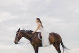 For this special robe called Athena, it's compose of body suit and a skirt in chiffon. Each bride will have a different material to use. Unique for you! We will propose different types of fabrics for you! The skirt is removable and can be used in other outfits as well.