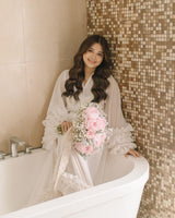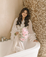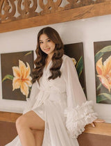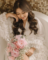 For this special robe called Bianca Louise, it's compose of elegant ruffles and a trail. It has an inner dress so you can untie your robe and make flowy poses with your robe before you get into your special gown.