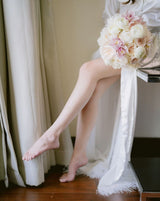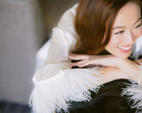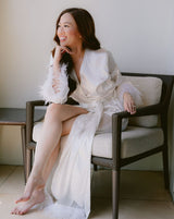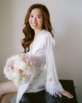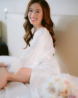 For this special robe called Mikee, it's compose of elegant satin fabrication with faux ostrich feathers.