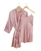The comfortable and glamorous looking Natalia set comes in old rose, maroon, emerald green and midnight blue. Composed of a long sleeve robe with a collar and dainty dress. This set ensures you the sweetest dreams & the most glamorous mornings. Perfect for the bride-to-be!