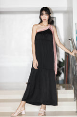 - This Camilla Dress comes in Black with an Old Rose Bow on the left shoulder
