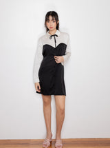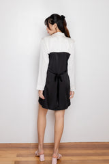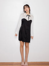 - This Maya Dress comes in black with white sleeves and collar