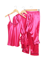 - Composed of a long sleeves top robe-like top,. sleeveless, and a pair of pyjama pants. This set ensures you the sweetest dreams and the most glamorous mornings.
