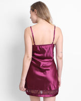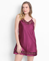 - Consists of plum lace in front part of the sleeveless dress, as well as the chest & shoulder part of the robe.